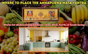 Annapurna Mata Yantra should be placed in the Kitchen area. It can be placed either on the Entrance of the Kitchen or inside the kitchen or near the Entrance inside but it should be visible whenever someone enters in the kitchen or working in the kitchen. No matters the direction of your kitchen door whether it is North facing, south facing, East facing, West facing, the presence of Annapurna Mata Yantra makes this Yantra universal for all directions. Best direction North East or South East area of your kitchen and Yantra always be visible when you works in kitchen.