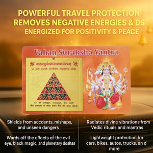 In order to safeguard yourself from evil eyes and negative energies, you can keep or install this Vahan Suraksha Yantra card in your vehicle or you can easily carry it in your pocket or purse.